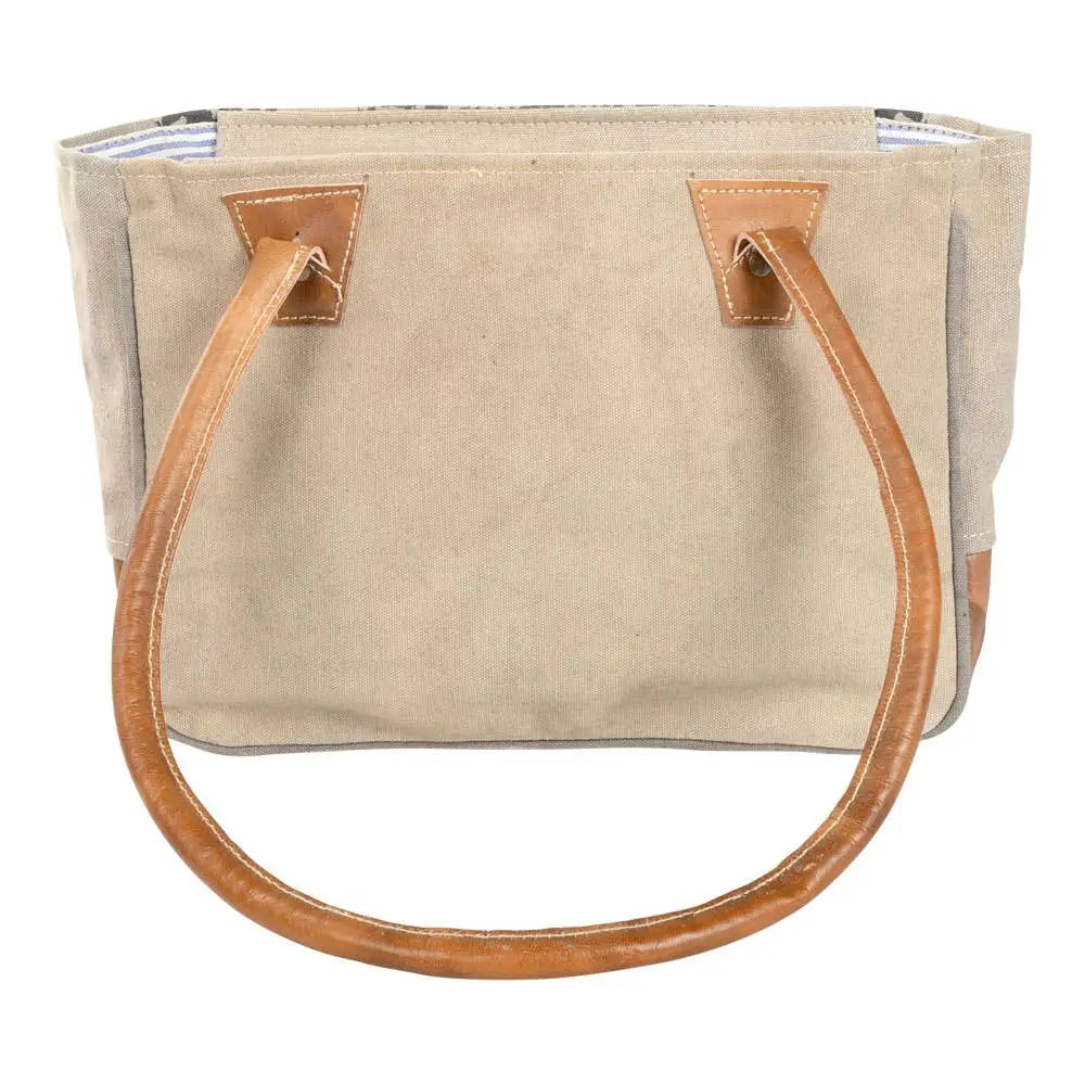 Tan Canvas Shoulder Bag with Print